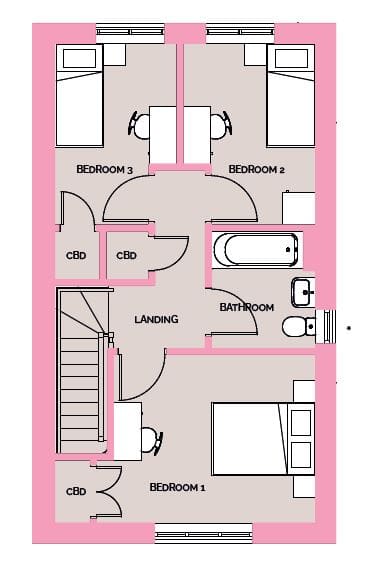 This three bedroom home offers a light kitchen/dining room with finishes from the latest Symphony kitchen collection. French doors from the kitchen/diner lead you onto the enclosed rear garden. Upstairs offers three bedrooms with the master benefiting from built-in storage. The family bathroom is finished with modern ceramic sanitaryware and tiling from the popular Porcelanosa bathroom collection.