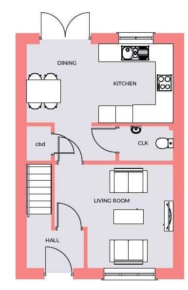 With an open-plan kitchen/dining room and separate lounge, The Larch delivers a modern yet cosy home. Patio doors open from the dining space onto the home’s rear garden.