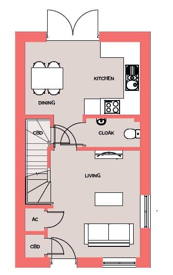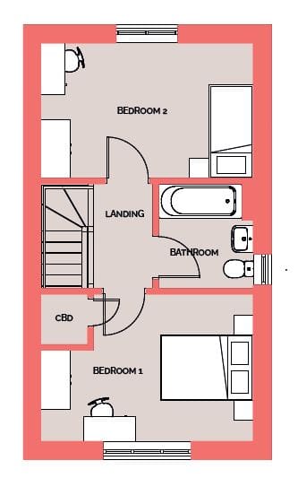This two bedroom home offers a light kitchen/dining room with finishes from the latest Symphony kitchen collection. French doors from the kitchen/diner lead you onto the enclosed rear garden. Upstairs offers two well proportioned bedrooms along with the family bathroom that’s finished with modern ceramic sanitaryware and tiling from the popular Porcelanosa bathroom collection.