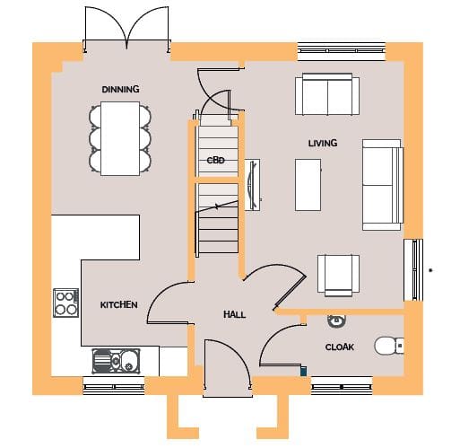 Computer generated images, photographs and floor plans are not to scale and are for illustrative purposes and information only. All dimensions indicated are approximate and furniture layouts are purely for illustrative purposes only. Homes may be a ‘handed’ (mirror image) version of the illustrations shown. Specifications may change depending on house type and are subject to availability. Choices and upgrades are dependent on the stage of construction. Finishes, materials, boundary and elevation treatments, parking arrangements and external spaces may vary from those shown. Landscaping is suggestive, and for illustrative purposes only.